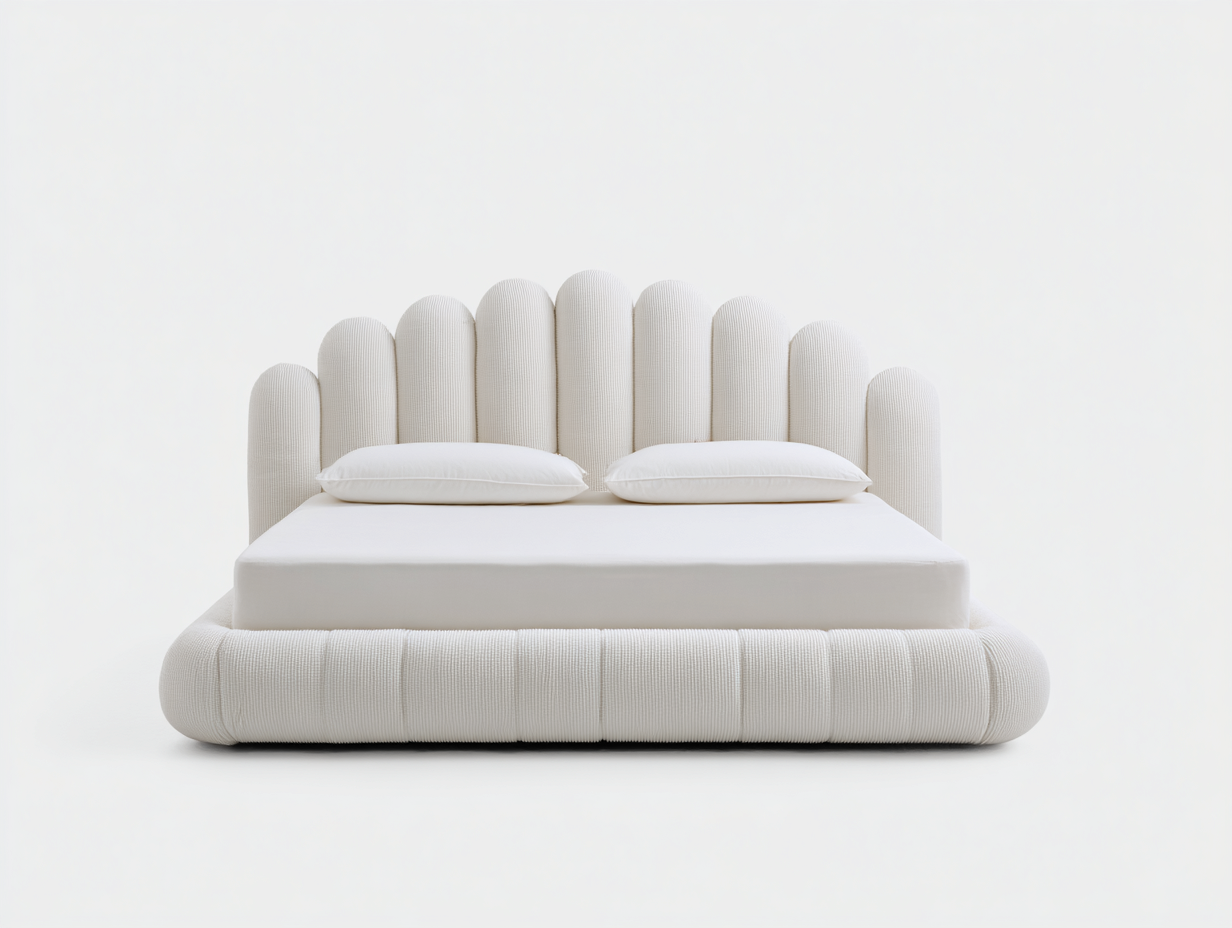 Ce lit double est conçu pour offrir un espace de couchage confortable et équilibré, adapté à une utilisation quotidienne dans une chambre à coucher. Sa silhouette douce et son dossier rembourré apportent une atmosphère apaisante tout en s'intégrant facilement à différents styles d'intérieur.