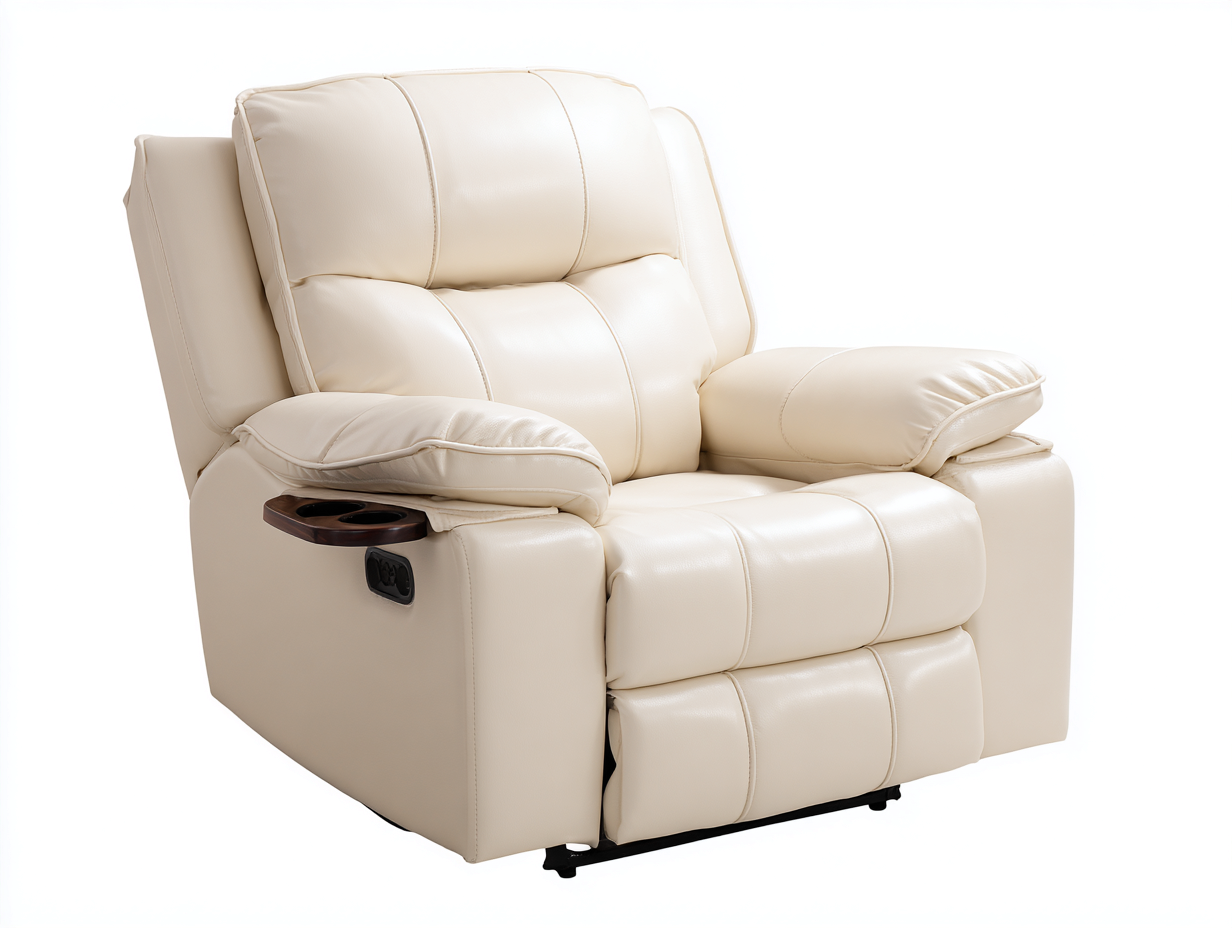 Fauteuil relax en cuir synthétique 94x98x104 cm - beige - confort relaxant pour salon